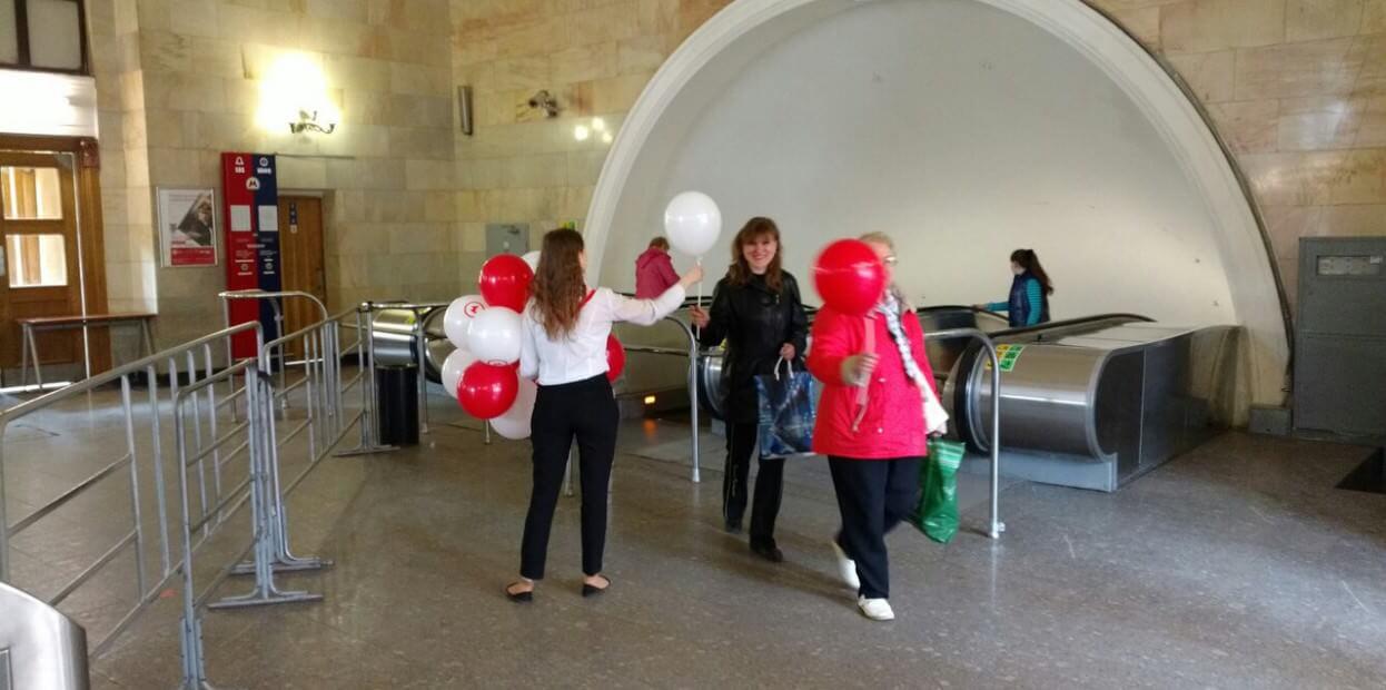 Улыбчивые и воодушевленные девушки раздавали шары. Тысячи людей получили не просто воздушный шарик, но и положительные эмоции. Особую радость они вызывали у детей: на каждой станции сияли юные улыбки и раздавался радостный и звонкий смех!