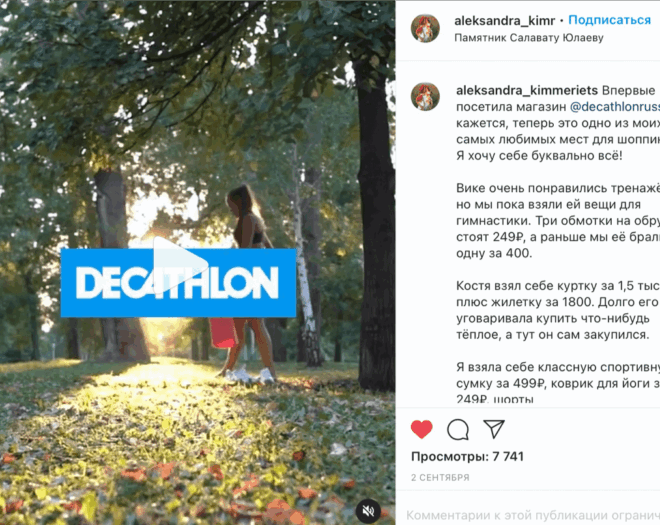 Работа с блогерами для Декатлона по акции «Дай волю спорту»
