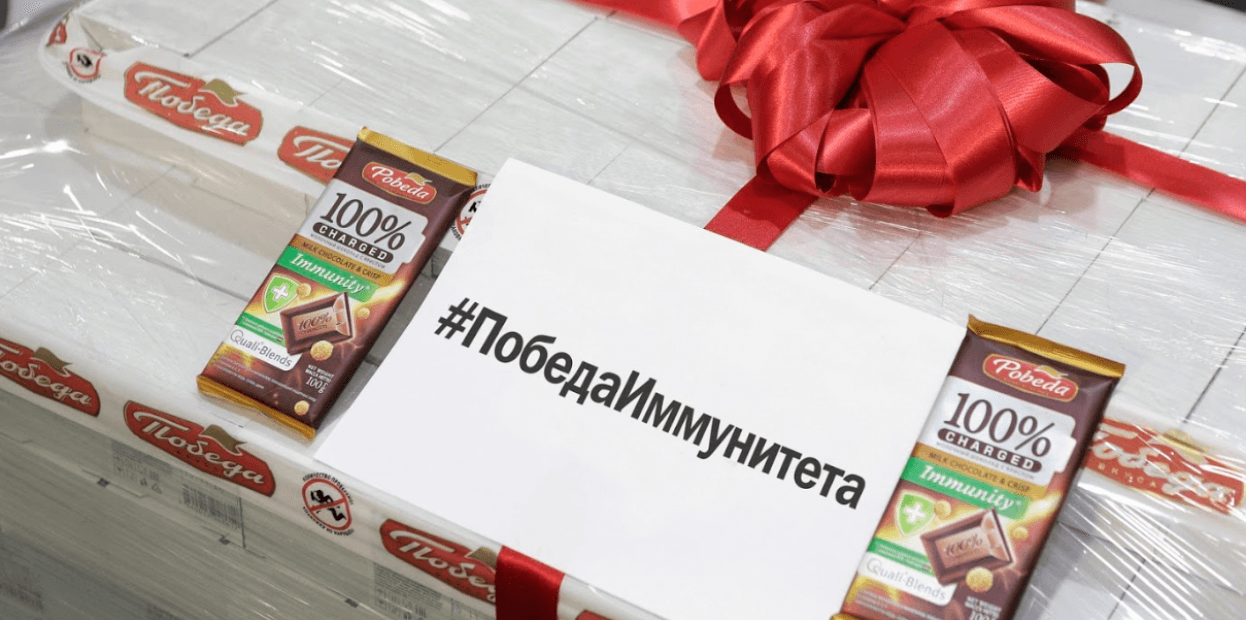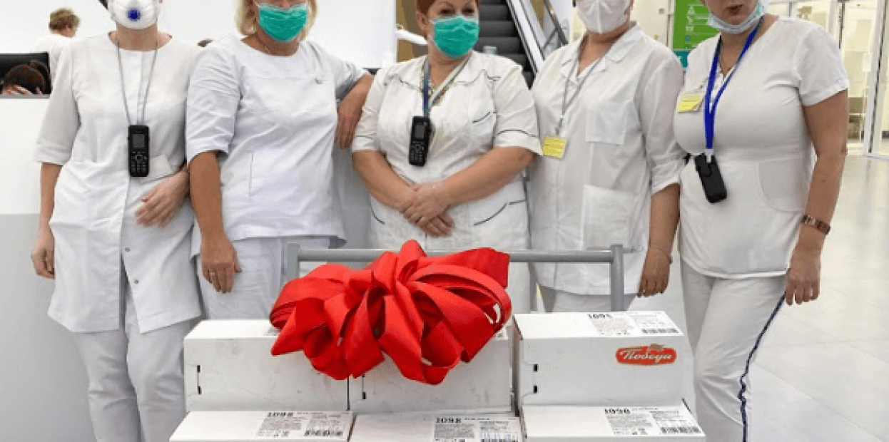 - Отправка клиентом партии шоколада, содержащего в себе витамины и микроэлементы, для клиник Москвы и области в поддержку врачей;
