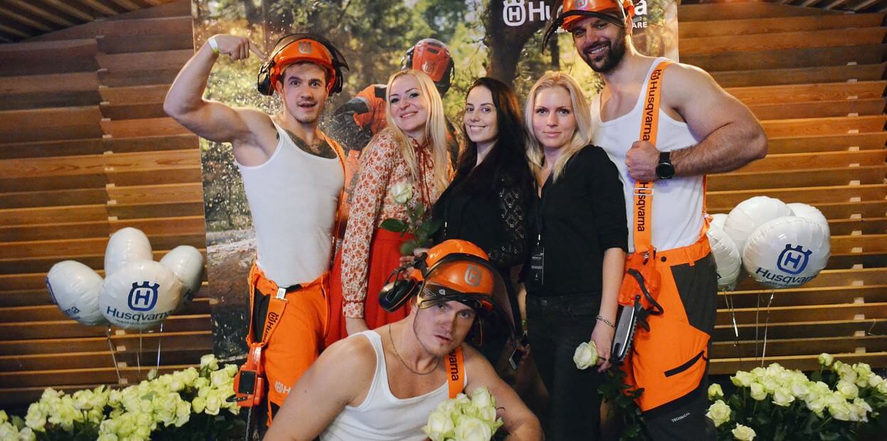 Команда Redline PR организовала стенд компании для фотографий; тщательно отобрала промо-моделей в стиле «лесорубы Husqvarna», образ которых ассоциируется с понятиями «брутальность», «мужественность»; забрендировала промо-персонал, облачив его в фирменную экипировку Husqvarna.