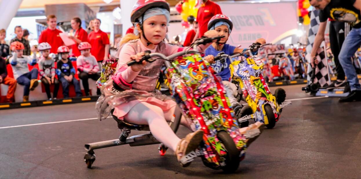 Forsage — уникальные дрифт-гонки для детей и подростков, полный аналог настоящей кольцевой гонки с элементами кручения и управляемыми заносами на продуманной специально для детей площадке.